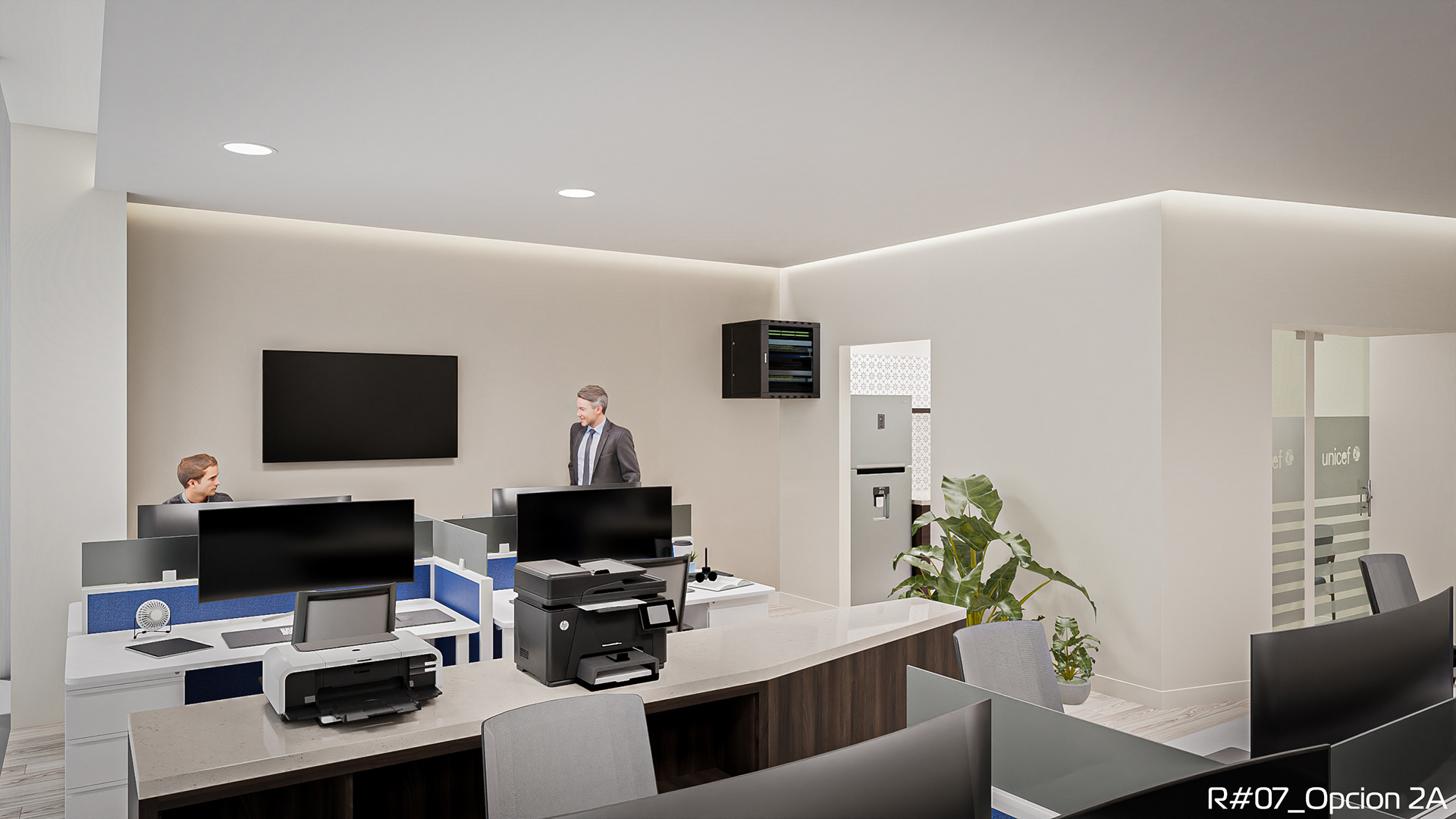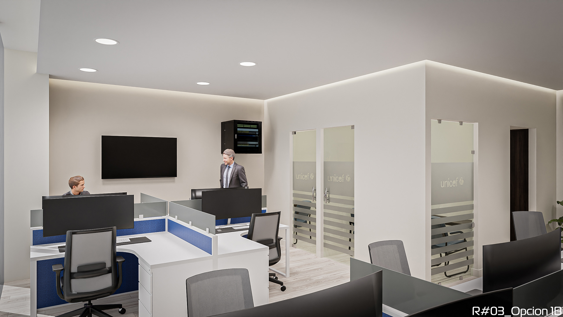 Visualizacion de diseño de remodelacion para oficinas de Unicef Tijuana, BC, MExico. Diseñado por: Chavez & Diaz Arquitectos http://www.cdarq.mx/index.html